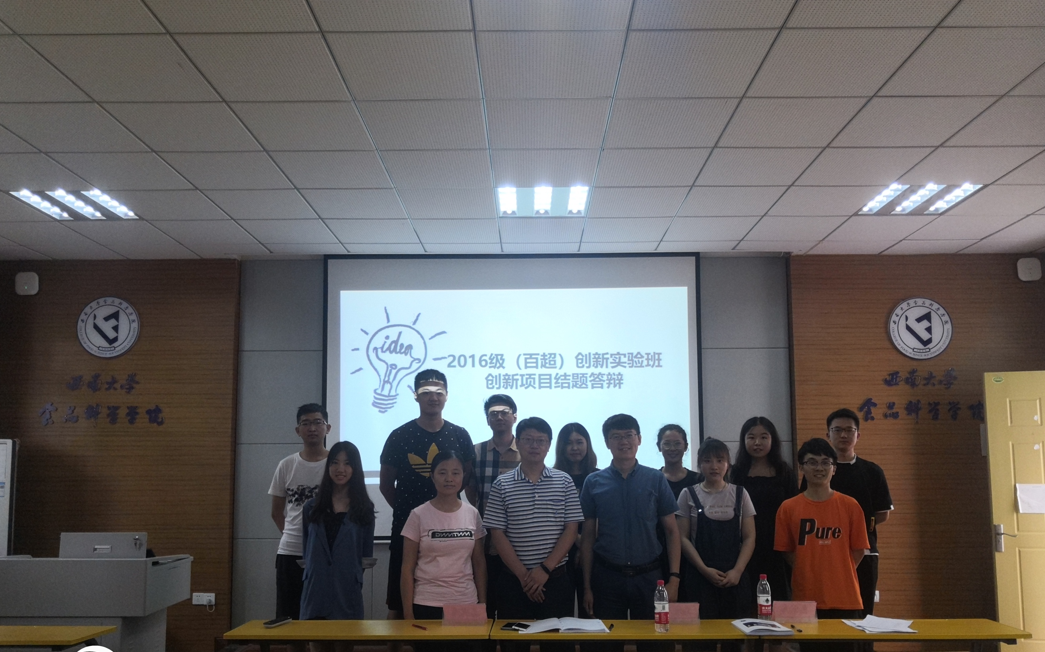 7月6日上午9:00-12:00,食品科学学院2016级(百超)创新实验班在39教学楼312报告厅、40教学楼206会议室举办了百超“创新项目”结题答辩会。食品科学学院专家组成员马良教授、索化夷副教授、陶晓奇副教授、叶发银副教授、邓丽莉副教授及罗惟老师等莅临结题答辩会,2017级、2018级(百超)创新实验班部分同学旁听并观摩学习。