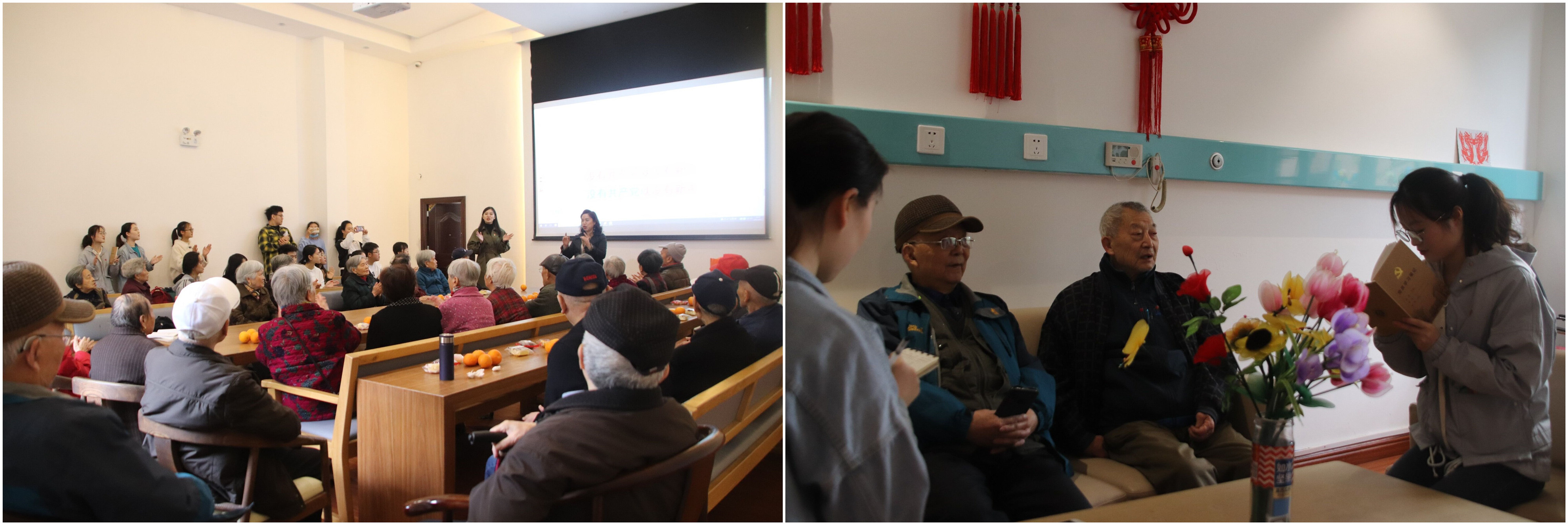 随后,党员们在优侍高龄社养老院开展了“我为群众办实事”的志愿服务,给老人们送上慰问品,和老人们拉家常、唱红歌、拍摄最美夕阳照,为老人普及食品营养与安全知识,了解老人们的生活、身体状况,大家有说有笑,气氛融洽。