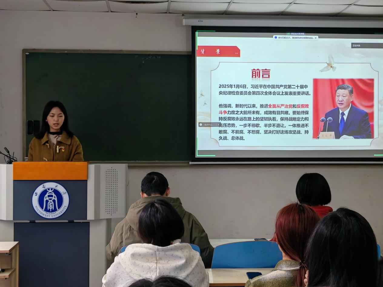 2025年3月14日,食品科学学院本科生第二党支部在32教401室开展了组织生活会。学院纪委委员邓丽莉同志出席指导,支部全体党员参会,会议由党支部书记方令同志主持。