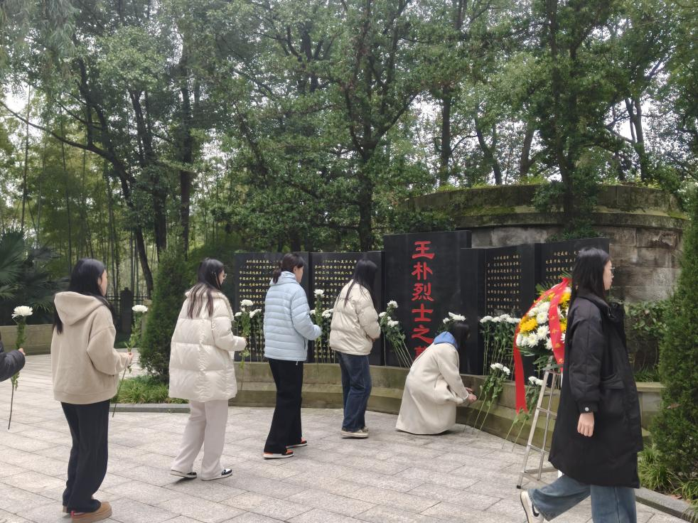 全体学生党员来到王朴烈士墓前,在肃穆的氛围中,大家整齐列队,低头默哀,向为民族解放事业英勇献身的王朴烈士致以深切缅怀。默哀毕,全体人员向烈士墓三鞠躬并依次敬献鲜花,以庄重的仪式表达对烈士的追思与敬意。
