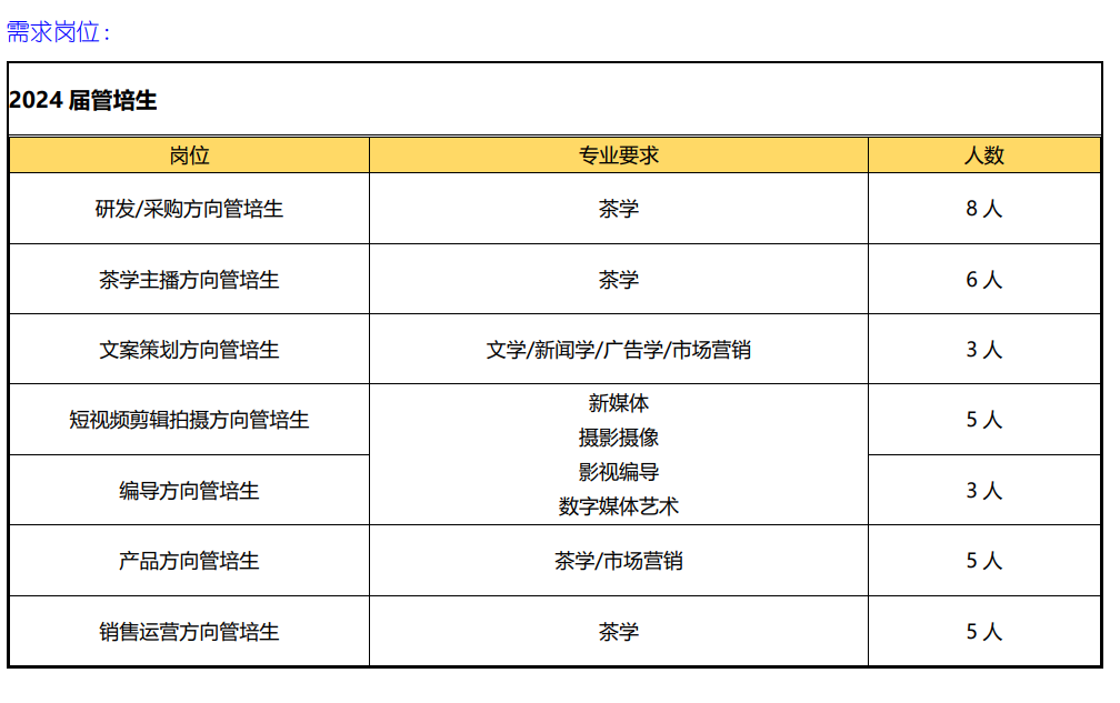 小罐茶 2024 年校园招聘简章