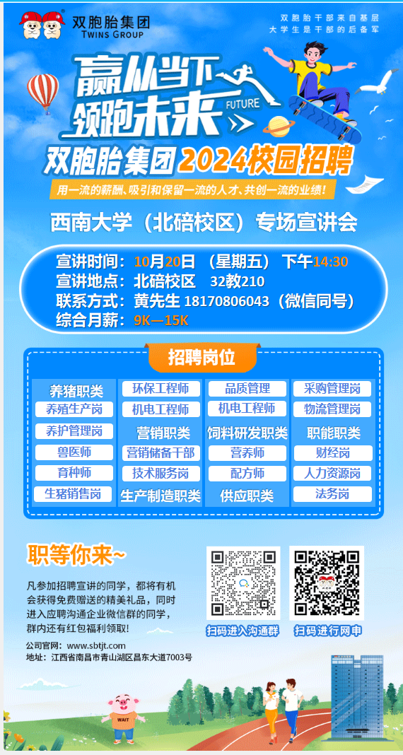 关注#双胞胎集团招聘#微信公众号,进行网申投递,提前锁定意向岗位