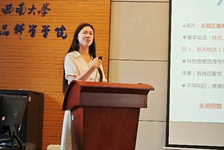 为切实培养学生简历撰写技能,增强简历与意向岗位的适配度,提高求职成功率,帮助学生打造自己的专属“名片”,5月24日下午,食品科学学院“2021级职业发展实践计划”系列活动之简历制作指导讲座在39教215成功举办。本次讲座由2021级辅导员夏雪主讲。