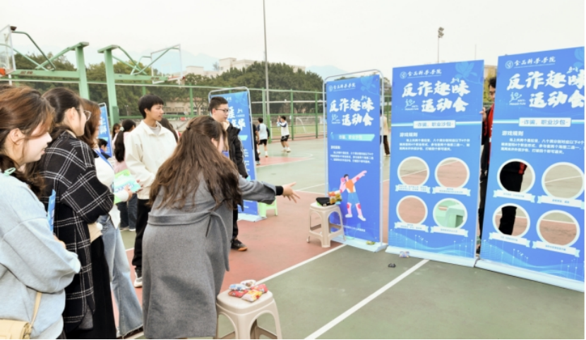 活动伊始,全体同学在主持人的带领下进行反诈宣誓,并在反诈签名墙上签名。同学们承诺坚决抵制各类诈骗行为,认真学习反诈知识,筑牢反诈防线。随后,本次反诈趣味运动会正式拉开帷幕。