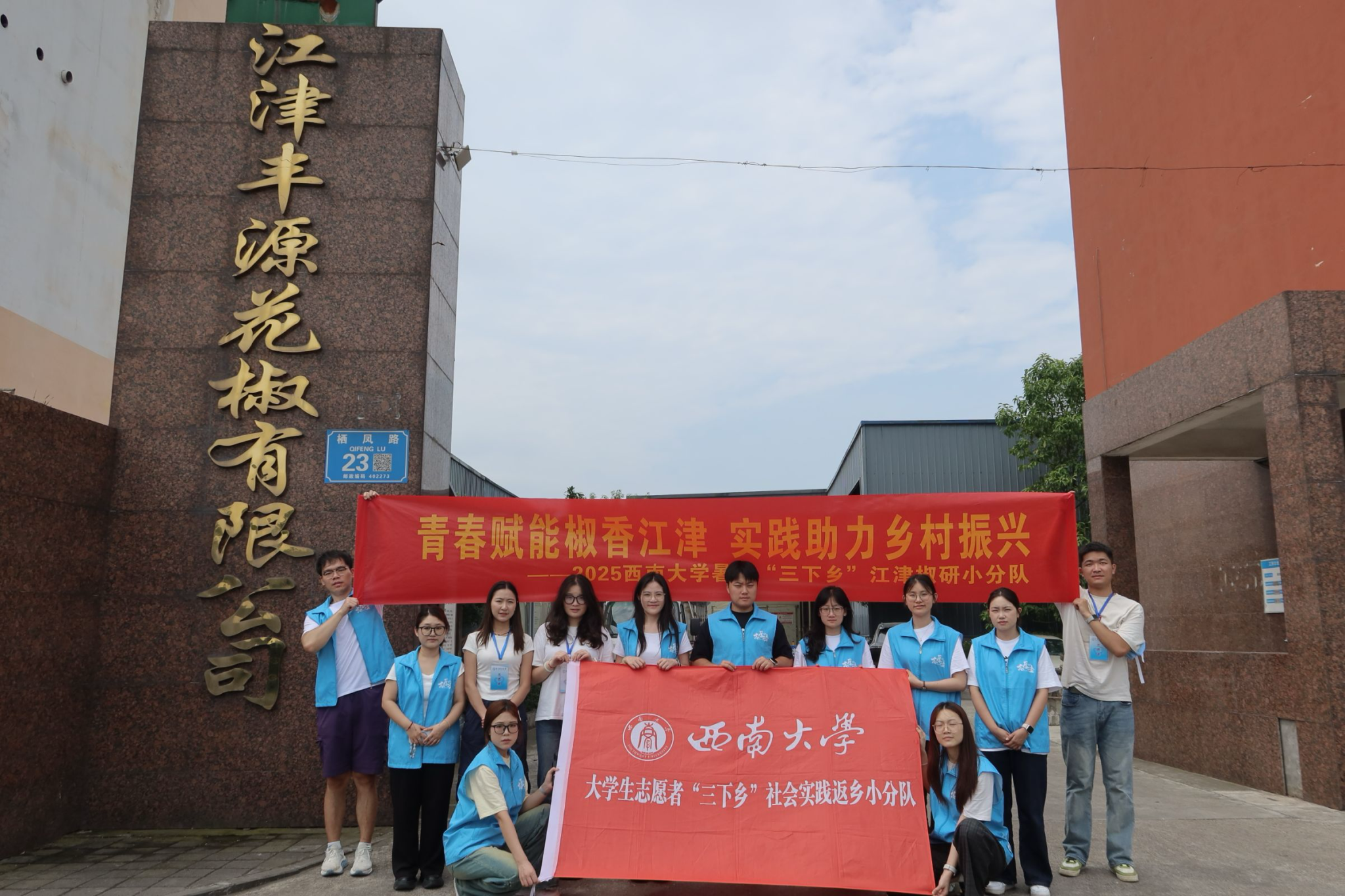 为深入学习贯彻习近平新时代中国特色社会主义思想和党的二十大精神,引导和帮助青年学生在社会课堂中“受教育、长才干、作贡献”,2025年7月7日,beat365中国唯一官网“江津椒研小分队”在指导教师张欢的带领下,赴重庆市江津区开展以“青春赋能椒香江津,实践助力乡村振兴”为主题的暑期“三下乡”社会实践。团队13名研究生循着椒香,走进企业车间、种植基地、行业协会与街头巷尾,全景调研花椒产业链,用专业所学为产业升级注入青春动能。